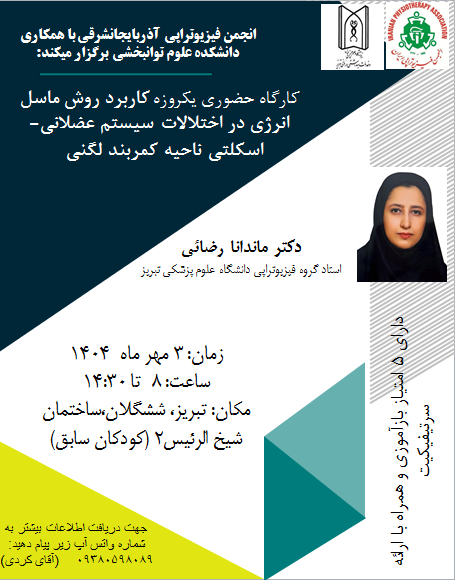 انجمن فیزیوتراپی استان آذربایجان شرقی با همکاری دانشکده علوم توانبخشی تبریز برگزار می کند