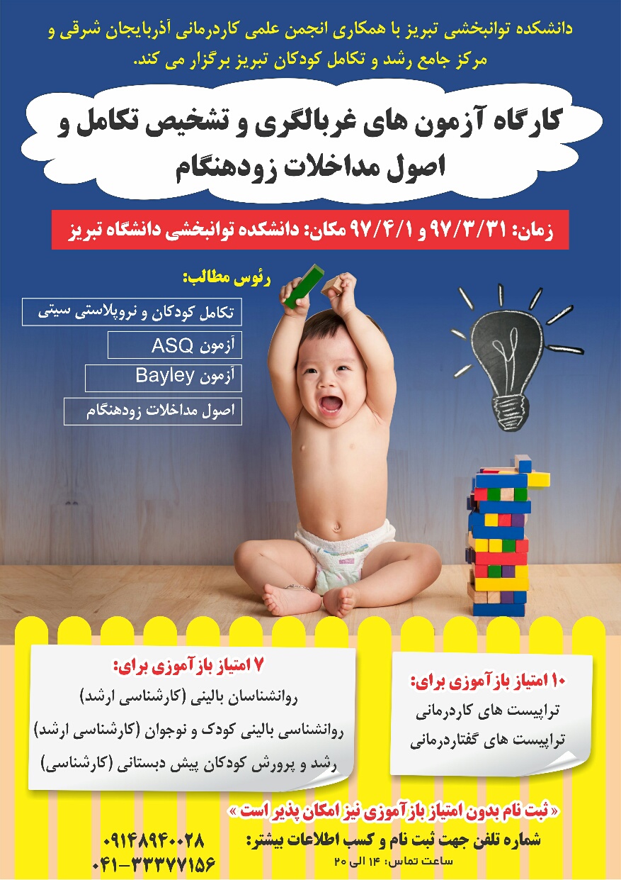 کارگاه آزمونهای غربالگری و تشخیص تکامل و اصول مداخلات زودهنگام