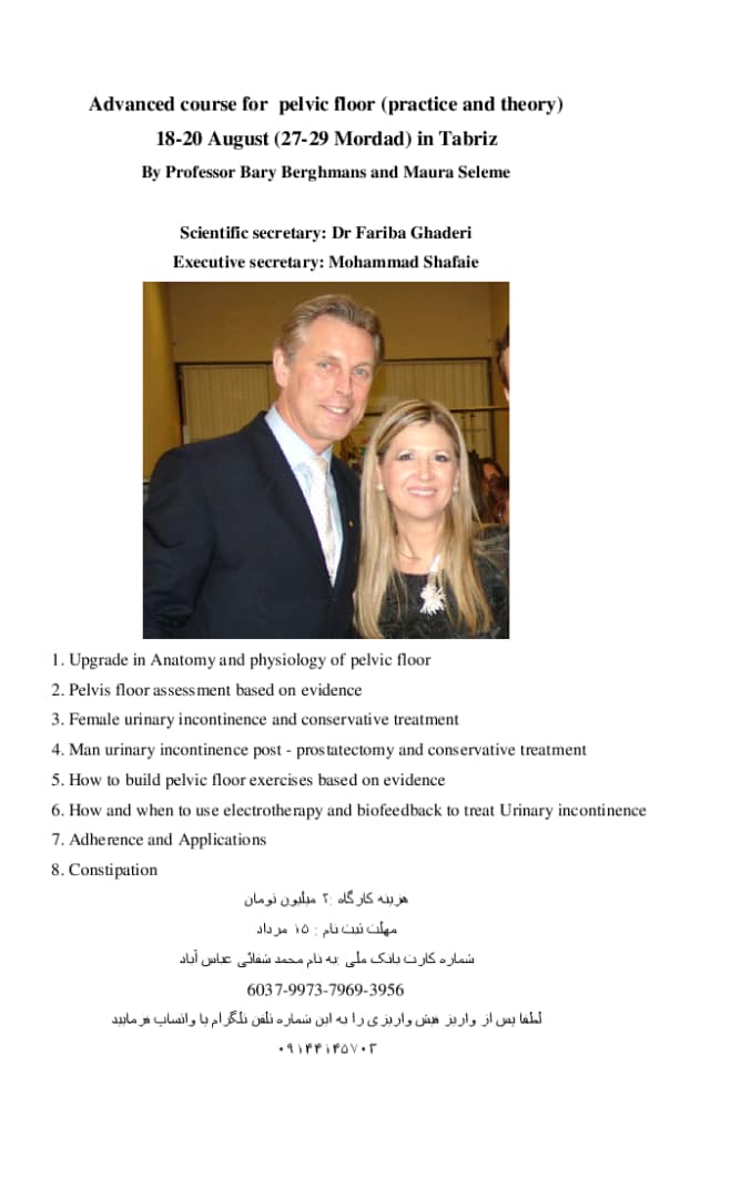 کارگاه پیشرفته سه روزه فیزیوتراپی کف لگن با تدریس پروفسور Berghmans