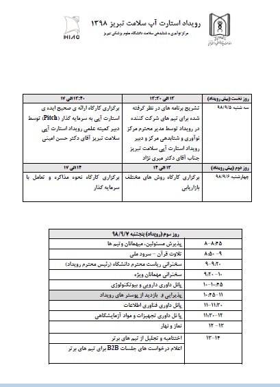 رویداد استارت آپ سلامت تبریز 1389 با همت مرکز نوآوری و شتاب دهی دانشگاه علوم پزشکی تبریز برگزار می شود .