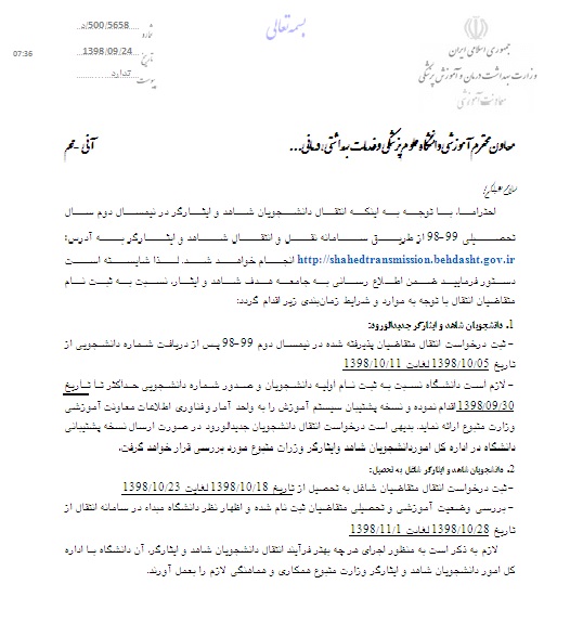 انتقال دانشجویان شاهد و ایثارگر انتقال دانشجویان شاهد و ایثارگر در نیمسال دوم سالتحصیلی 99-98 کد خبر : 53381 کپی کلمات کلیدی : دانشگاه علوم پزشکی تبریز نقل و انتقالات دانجویان شاهد