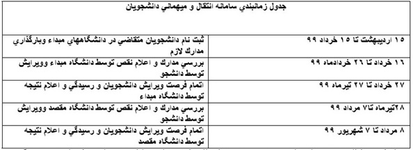 زمانبندی فعالیت سامانه انتقال و میهمانی
