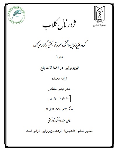 ژورنال كلاب با عنوان " فیزیوتراپی در اختلالات بلع " با ارائه دکتر عباس سلطانی