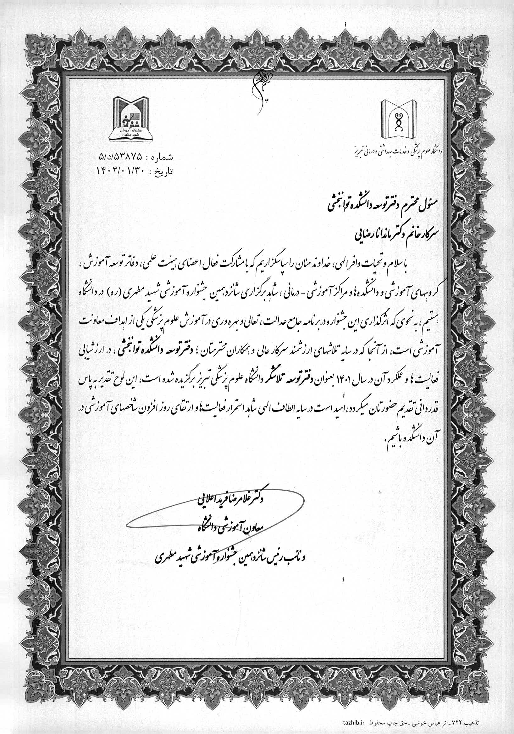 دفتر توسعه آموزش دانشکده توانبخشی منتخب به دفتر توسعه تلاشگر